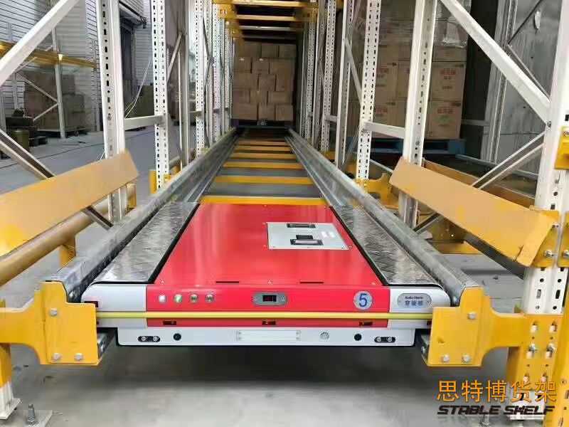 穿梭式貨架是一種高效、高密度、低成本的存儲(chǔ)方式,與貫通貨架相比,存儲(chǔ)能力相當(dāng),但安全可靠,貨架不容易損壞