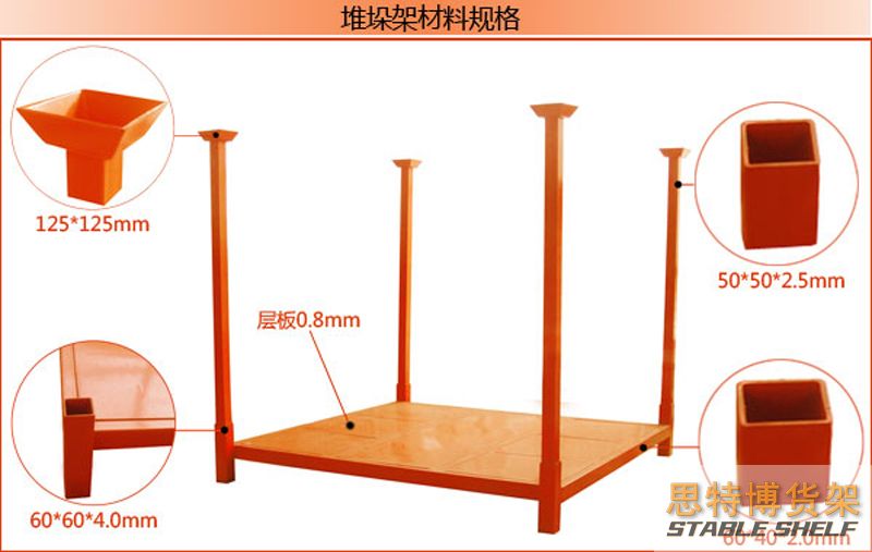 堆垛架,可相互堆3到4層,形成立體存儲(chǔ)模式,無需借助貨架、倉儲(chǔ)籠和托盤等設(shè)備,適合用在租賃倉庫、低矮的老式倉庫或車間暫存區(qū)等不適合投資貨架的區(qū)域。