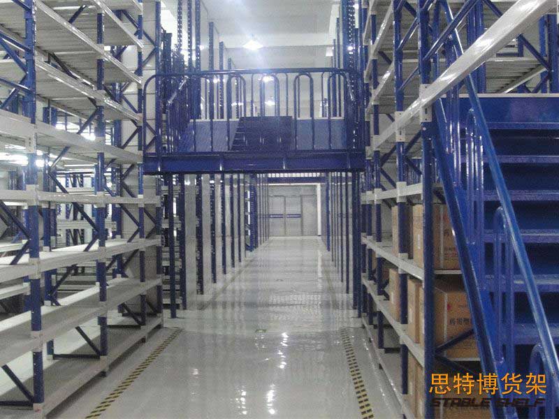 閣樓貨架系統(tǒng),通常利用中型擱板式貨架或重型擱板式貨架作為主體支撐加上樓面板(根據(jù)貨架單元的總負(fù)載重量來(lái)決定使用何種貨架),樓面板通常使用冷軋型鋼樓板、花紋鋼樓板或鋼格柵樓板。