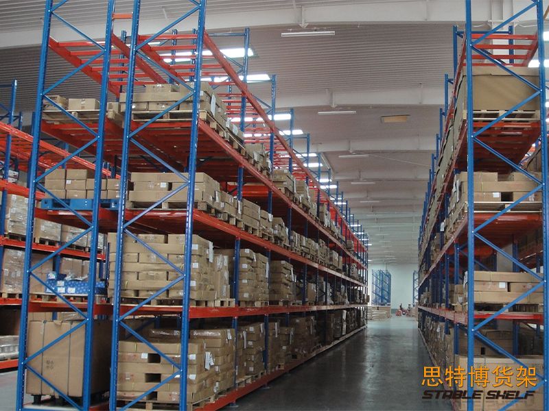 The heavy-duty shelf type uses the most common kind of shelf, which has good practice efficiency.The storage density of fixed racks is low, and the stored items are heavier and must be used with pallets and forklifts, so they are also called pallet racks.When using heavy-duty racks, the size, weight, and number of stacked layers of pallets and goods must be considered to determine the appropriate size of pillars and beams.In addition, in order to improve space utilization, the width of the aisle can be reduced, and the special forklift track form can be used to verticalize the storage space, which becomes a narrow lane type material rack.