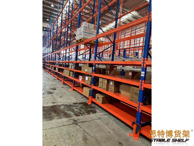 The heavy-duty shelf type uses the most common kind of shelf, which has good practice efficiency.The storage density of fixed racks is low, and the stored items are heavier and must be used with pallets and forklifts, so they are also called pallet racks.When using heavy-duty racks, the size, weight, and number of stacked layers of pallets and goods must be considered to determine the appropriate size of pillars and beams.In addition, in order to improve space utilization, the width of the aisle can be reduced, and the special forklift track form can be used to verticalize the storage space, which becomes a narrow lane type material rack.