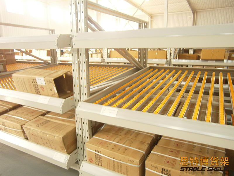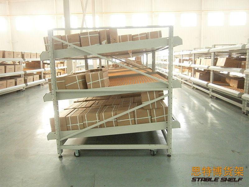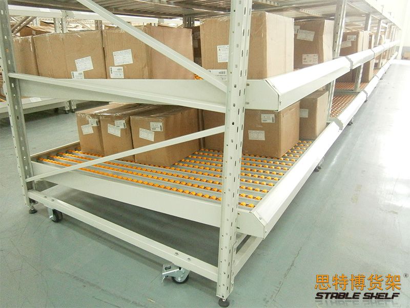 流利式貨架又稱滑移式貨架,采用輥輪鋁合金,鈑金等流利條,利用貨物臺架的自重,從一邊通道存貨,另一邊通道取貨實現(xiàn)先進先出,存儲方便,以及一次補貨多次取貨。流利架存儲效率高,適合大量貨物的短期存放和揀選??膳潆娮訕撕?,實現(xiàn)貨物的輕松管理,常用滑動容器有周轉(zhuǎn)箱,零件盒及紙箱,適合大量貨物和短期存放和揀選。廣泛應用于配送中心、裝配車間以及出貨頻率較高的倉庫。