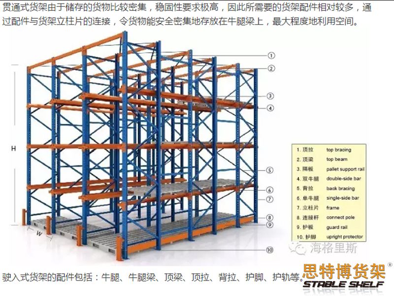 Through-type shelves are also called drive-in shelves or corridor-type shelves.The characteristics of the shelf are as follows: