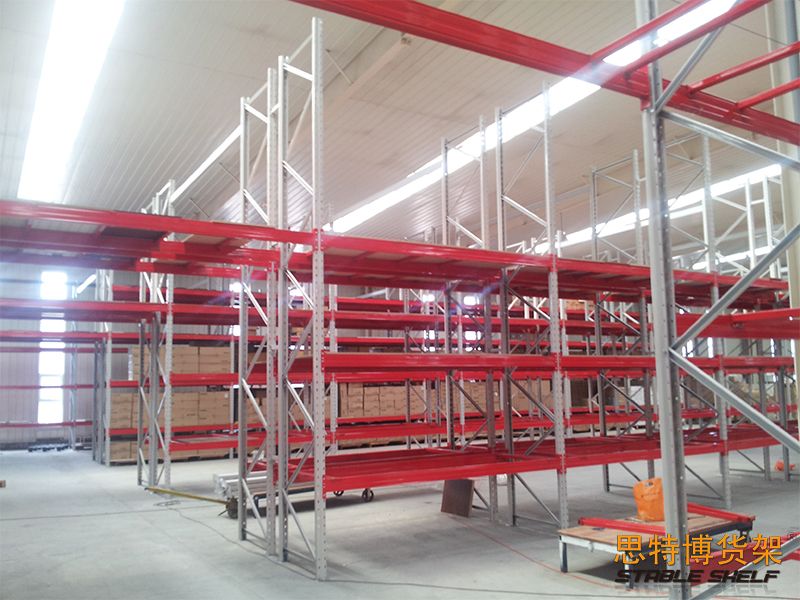 重型貨架是最常用的一種貨架,它具有良好的提取效率。固定架的儲存密度低,儲存的物品較重,必須配合托盤和叉車使用,所以又稱托盤貨架。在使用重型貨架時,必須考慮托盤和貨物的尺寸、重量和堆疊層數(shù),以確定合適的支柱和橫梁尺寸。此外,為提高空間利用率,可減小通道寬度,采用專用堆垛機的軌道形式,即窄車道式貨架,將存儲空間垂直放置。
