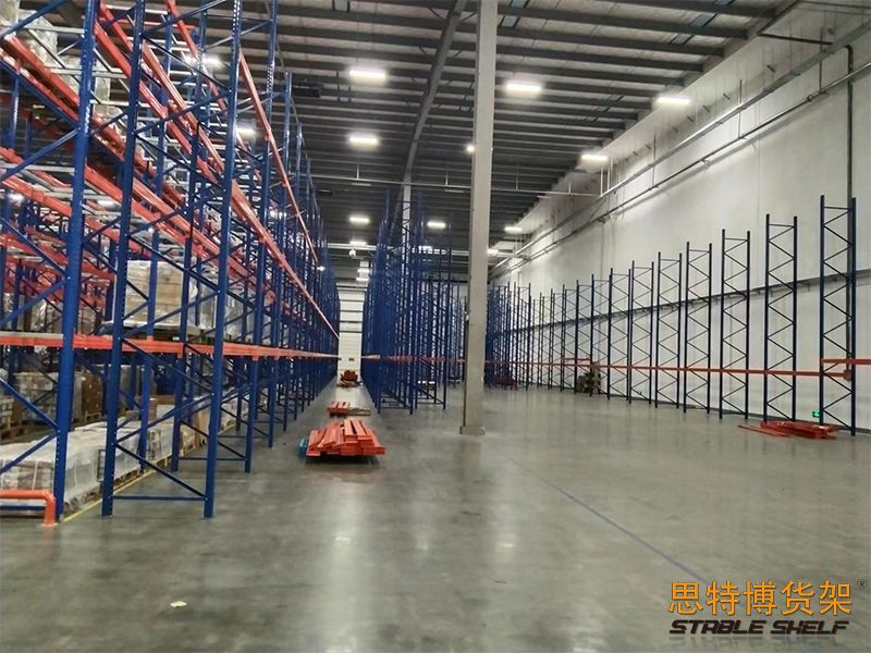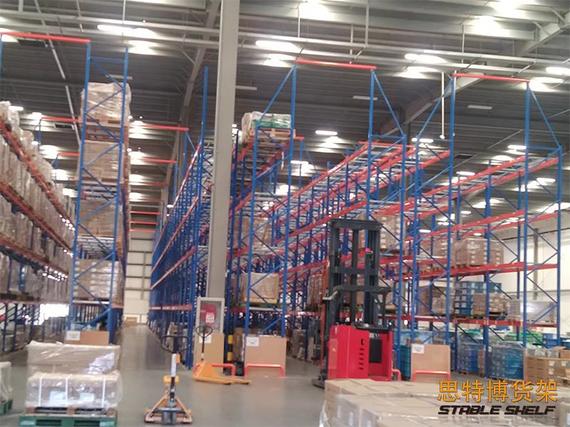 重型貨架是最常用的一種貨架,它具有良好的提取效率。固定架的儲存密度低,儲存的物品較重,必須配合托盤和叉車使用,所以又稱托盤貨架。在使用重型貨架時,必須考慮托盤和貨物的尺寸、重量和堆疊層數,以確定合適的支柱和橫梁尺寸。此外,為提高空間利用率,可減小通道寬度,采用專用堆垛機的軌道形式,即窄車道式貨架,將存儲空間垂直放置。